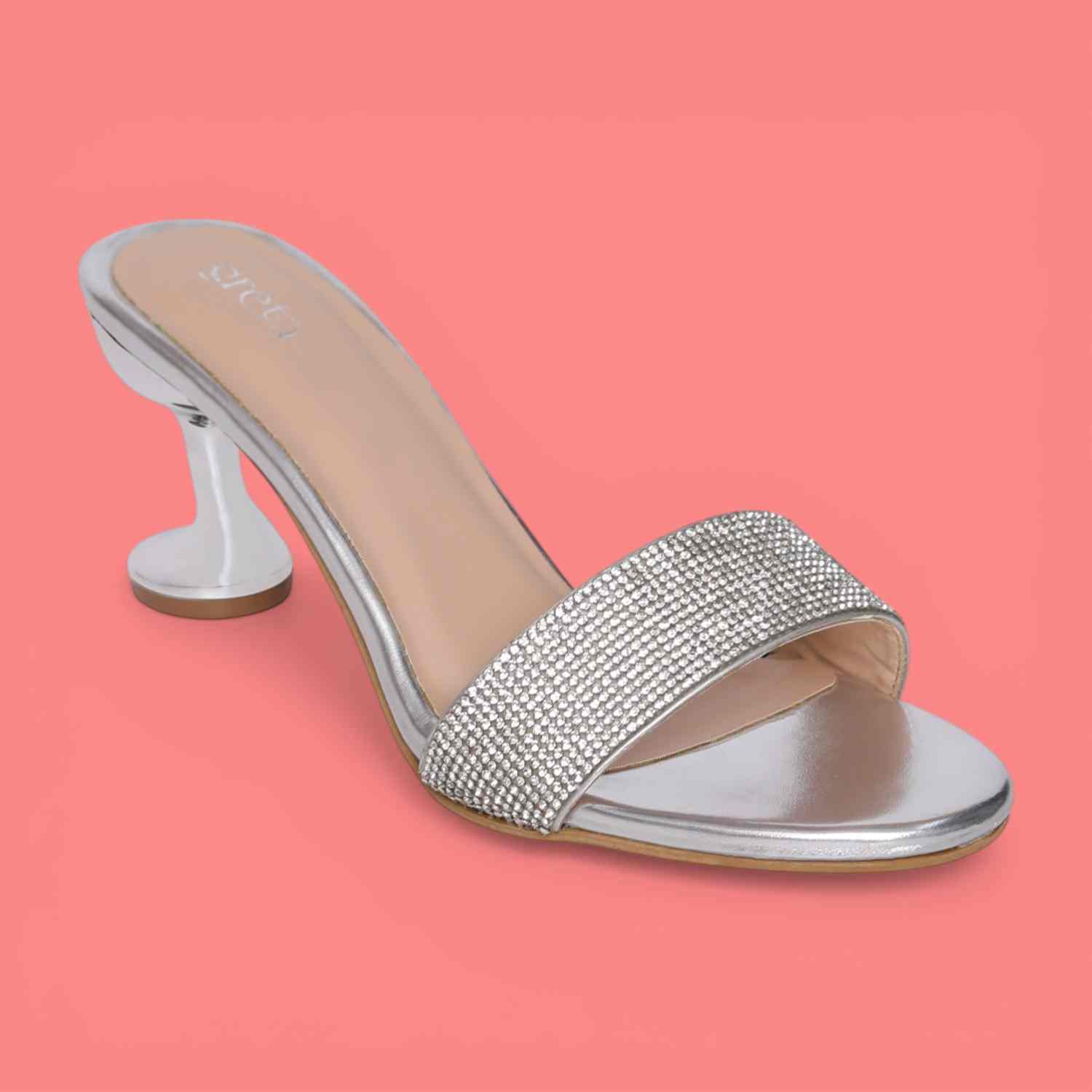 Home / Products / greta / Women’s Silver Crystal Slip-On Heels with Sculpted Heel