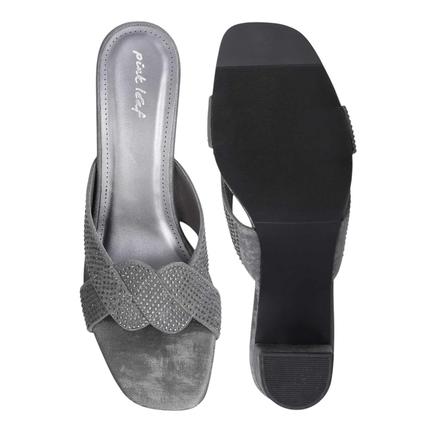 Make a bold yet refined statement in these dark grey heels. The glittery braided strap and deep tone add glamour to any outfit—perfect for evening wear, parties, or festive gatherings.