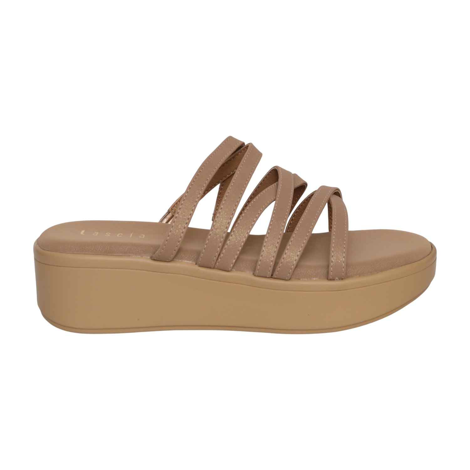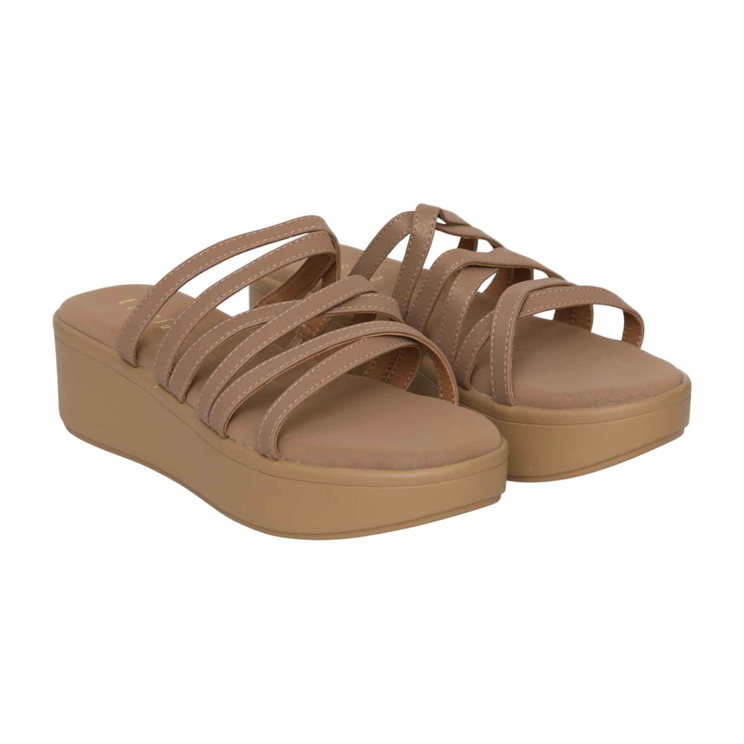 Radiating a clean, effortless confidence, this pair embodies modern comfort. The multi-strap upper creates a flattering, interwoven design (like rings of straps), adding a textured sophistication to the versatile silhouette. Built on a supportive platform wedge, it blends contemporary style with superior ease for comfortable all-day wear.