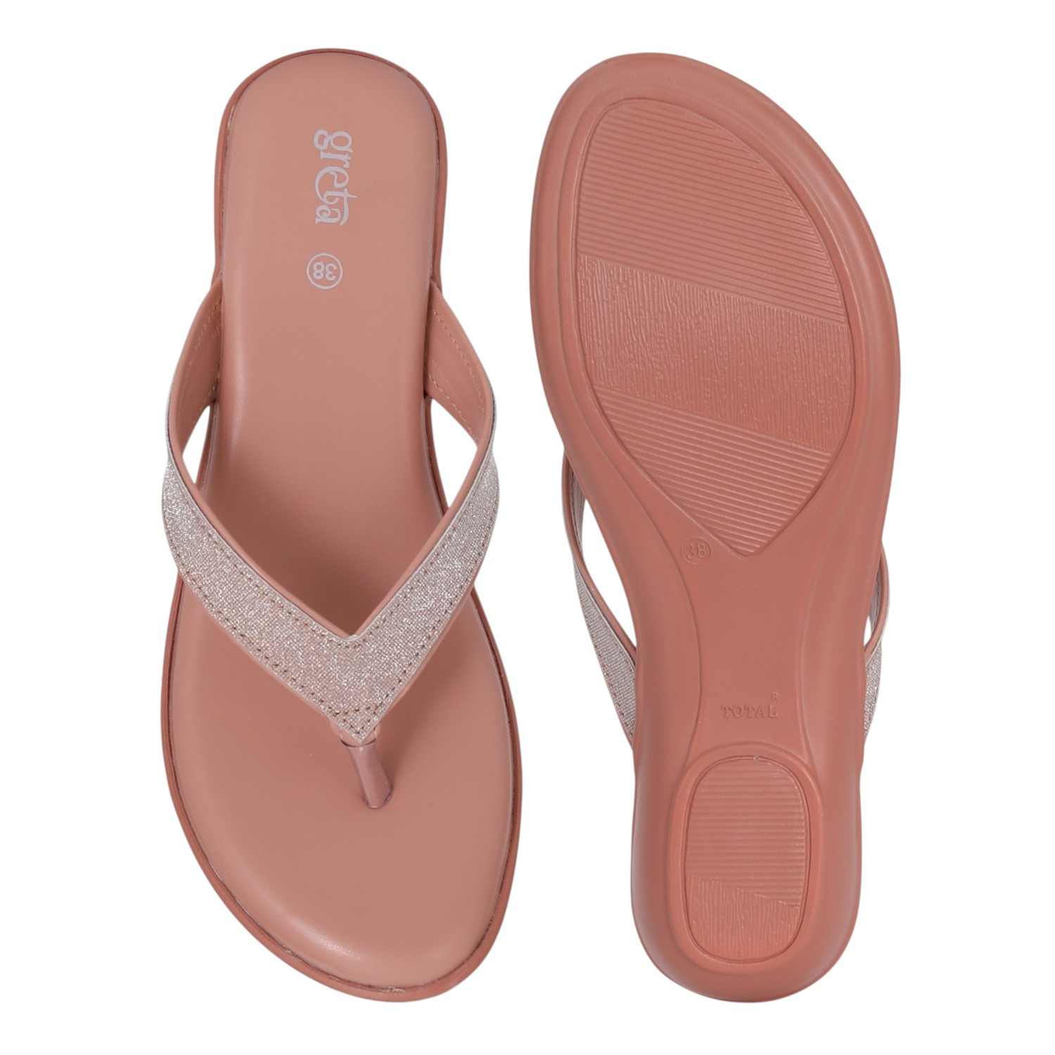 A chic blend of comfort and style, this pair features a subtle shimmer strap over a soft rose-toned base for a refined, feminine look. Lightweight and cushioned for all-day ease, it’s perfect for adding a hint of sparkle to everyday wear, festive occasions, or evening outings. The sleek wedge sole ensures a graceful lift without compromising comfort.