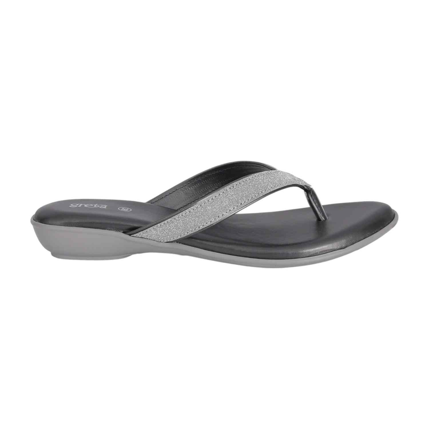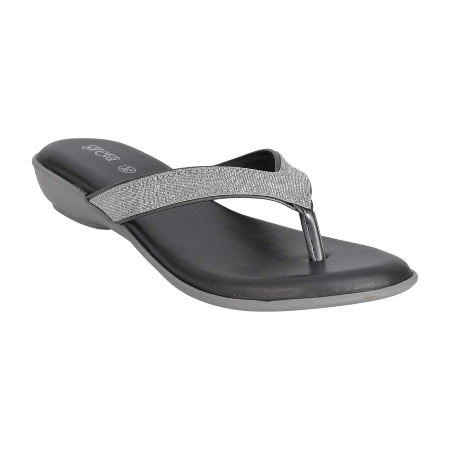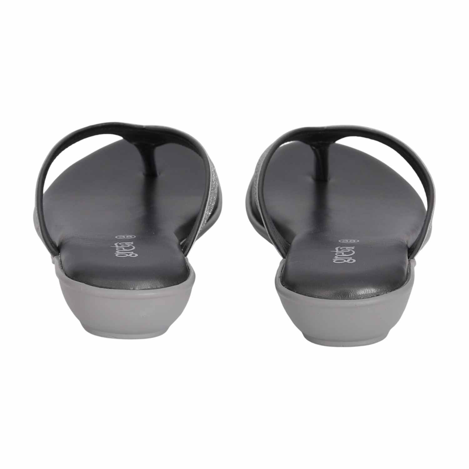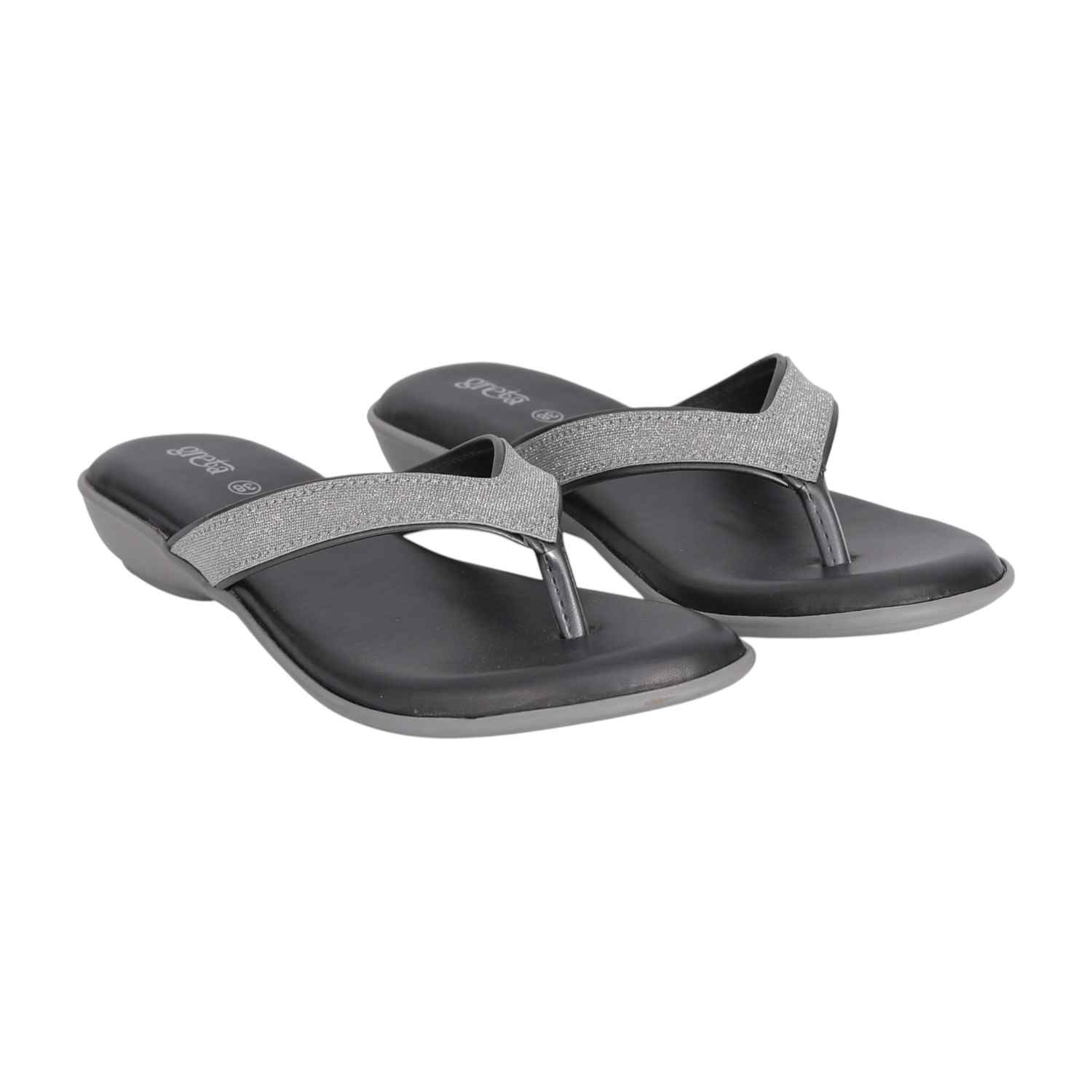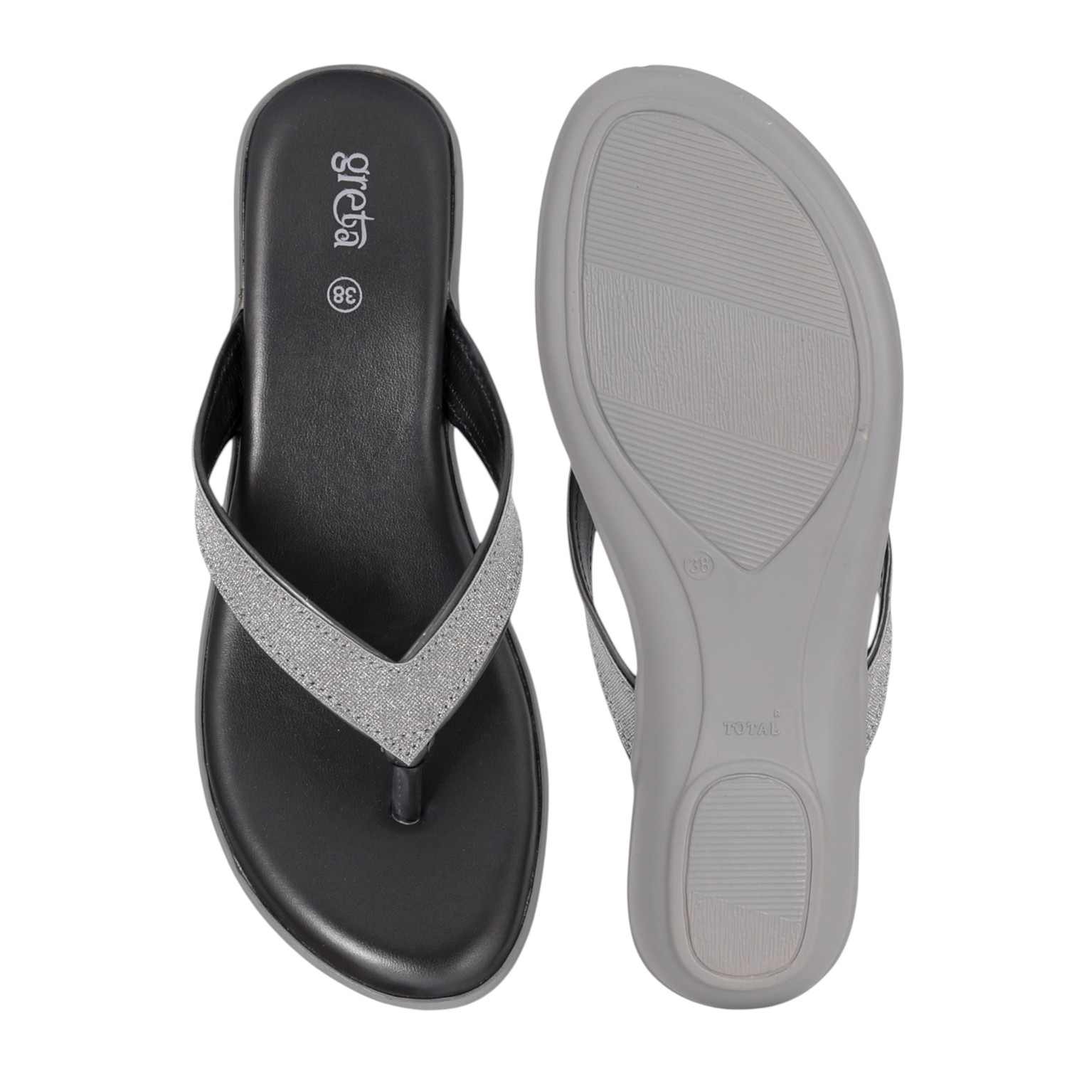 Designed to add subtle sparkle to your step, this pair combines elegance with comfort. The shimmering silver strap brings a modern, festive touch, while the cushioned sole ensures ease throughout the day. With its sleek wedge profile, it’s perfect for casual outings, evening wear, or special occasions where effortless style is key.