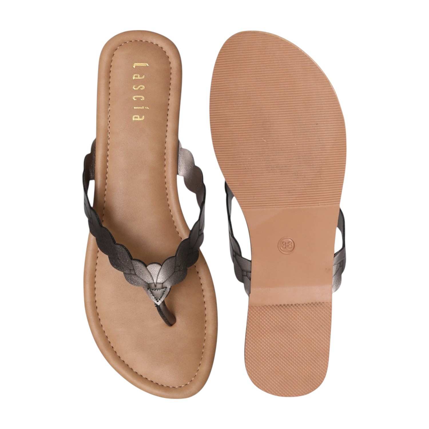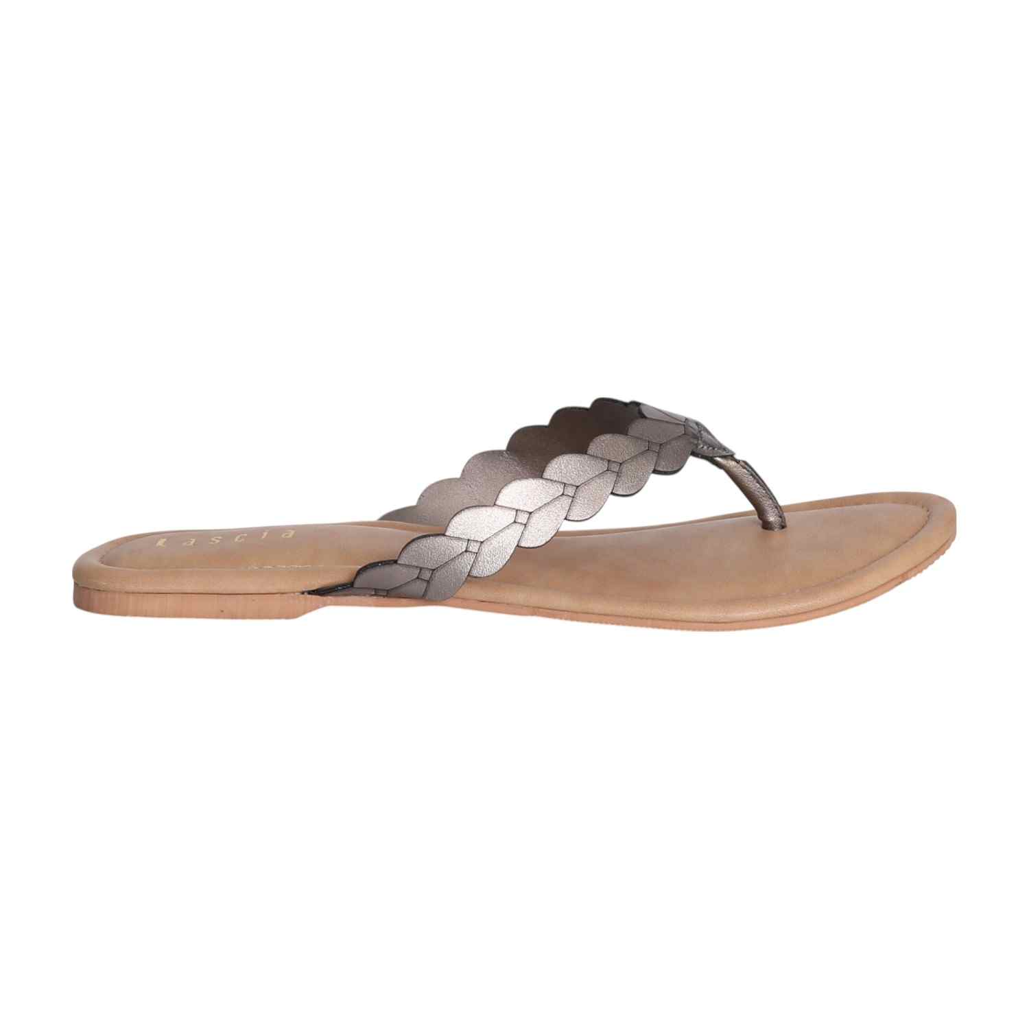 Elegant and earthy, these BronzeWeave Flat Thong Sandals combine simplicity with a touch of glam. Featuring a unique woven-style metallic strap in a beautiful bronze hue, they offer a refined yet relaxed look perfect for casual and festive wear alike. The cushioned insole and flat sole make them a go-to option for effortless everyday comfort without compromising on style.