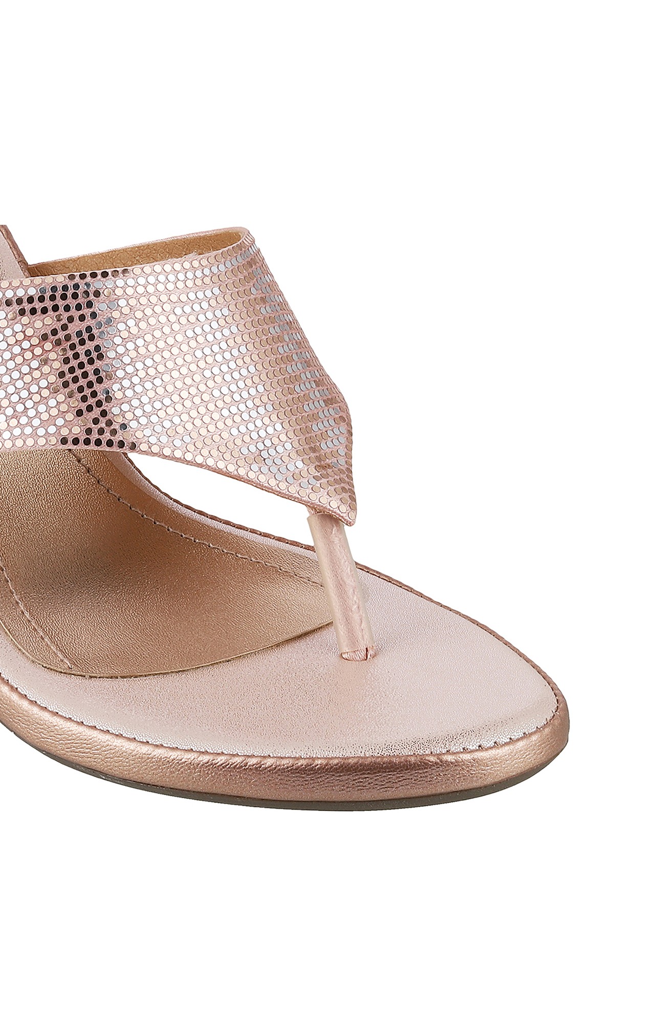 Step out in style with these head-turning Women Stylised Chunky Heels Rose Gold Sandals.