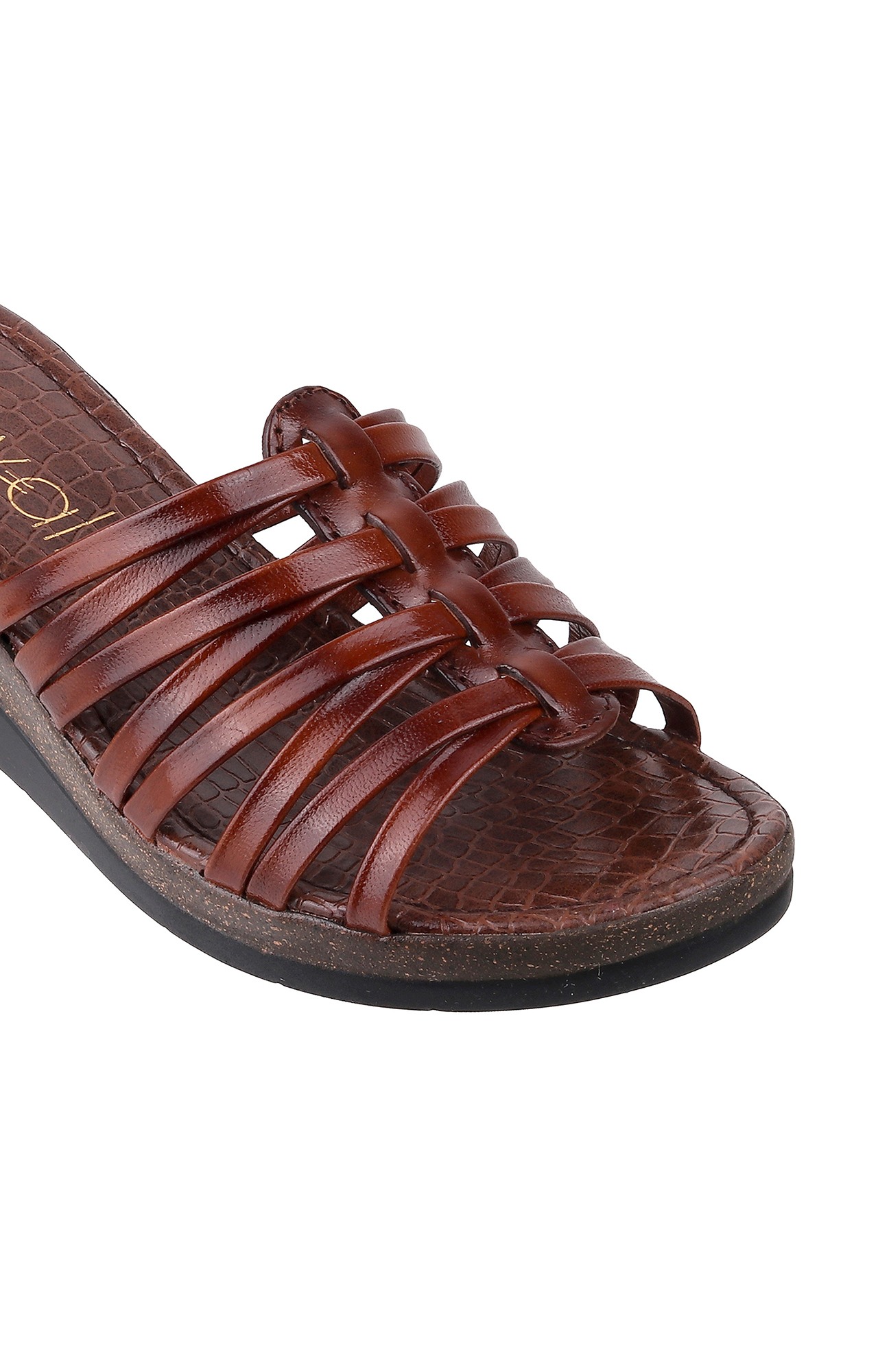 Elevate your style to new heights with our Women Stylised Platforms Brown Sandals! These stunning sandals are the perfect blend of fashion and function.