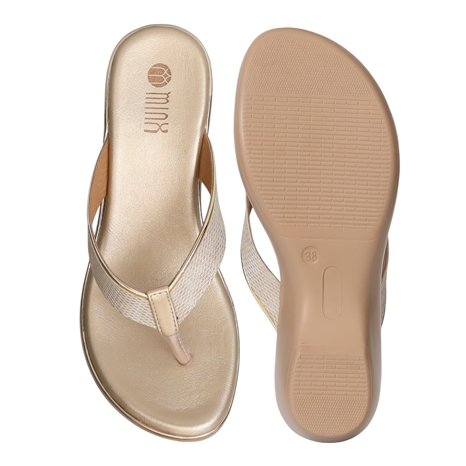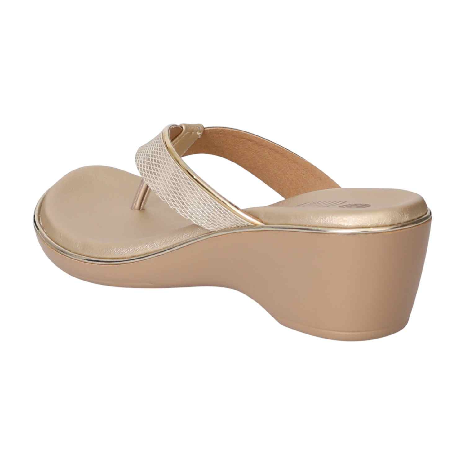 A perfect blend of comfort and style, this metallic gold wedge sandal is a warm-weather essential. Its elegant design and subtle shine make it a versatile choice for any summer occasion, from a casual brunch to an evening out. The supportive wedge heel provides a comfortable lift, while the cushioned insole ensures all-day comfort.