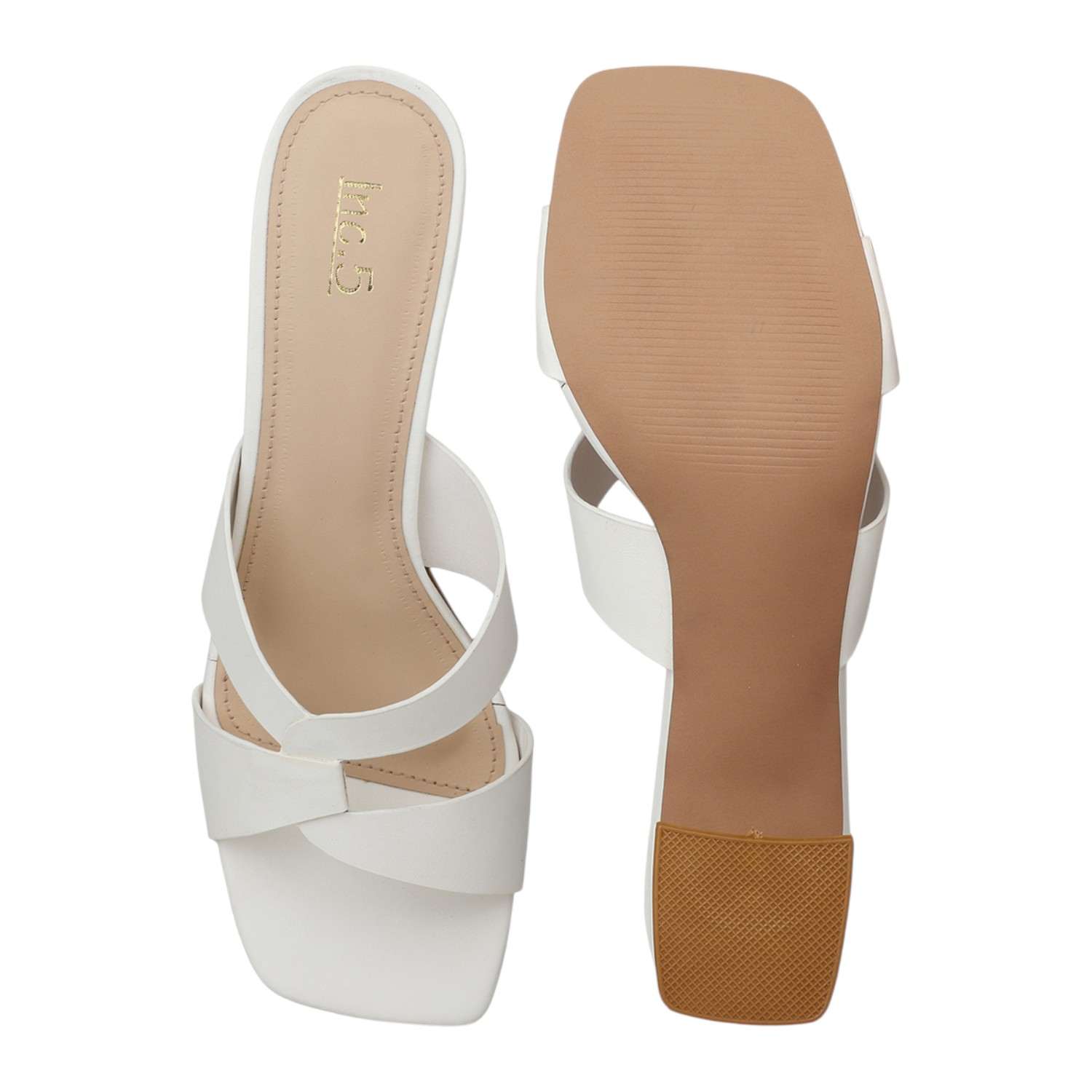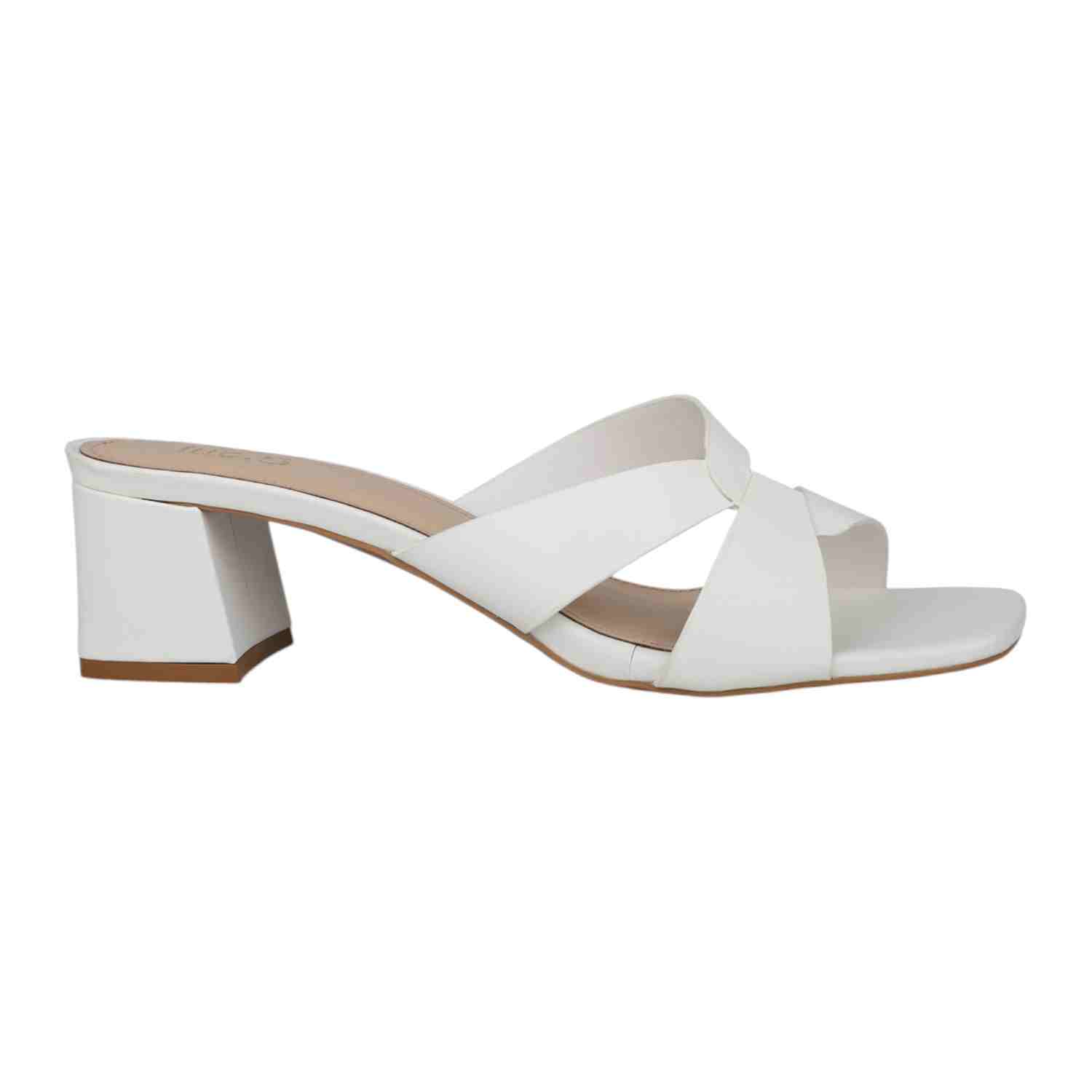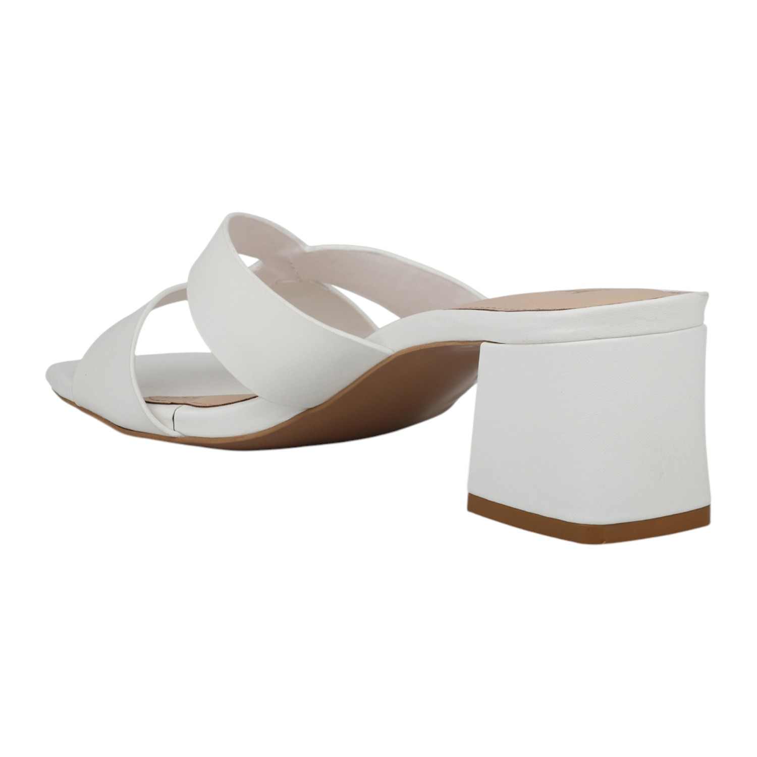 Step out in sophisticated style with these white block heel slides. Featuring a chic interwoven strap design across the vamp, they offer a modern and elegant look. The comfortable block heel provides a stable lift, making these slip-on sandals a versatile choice for both casual and dressier occasions.