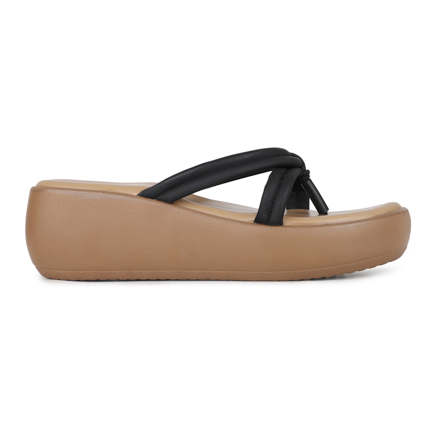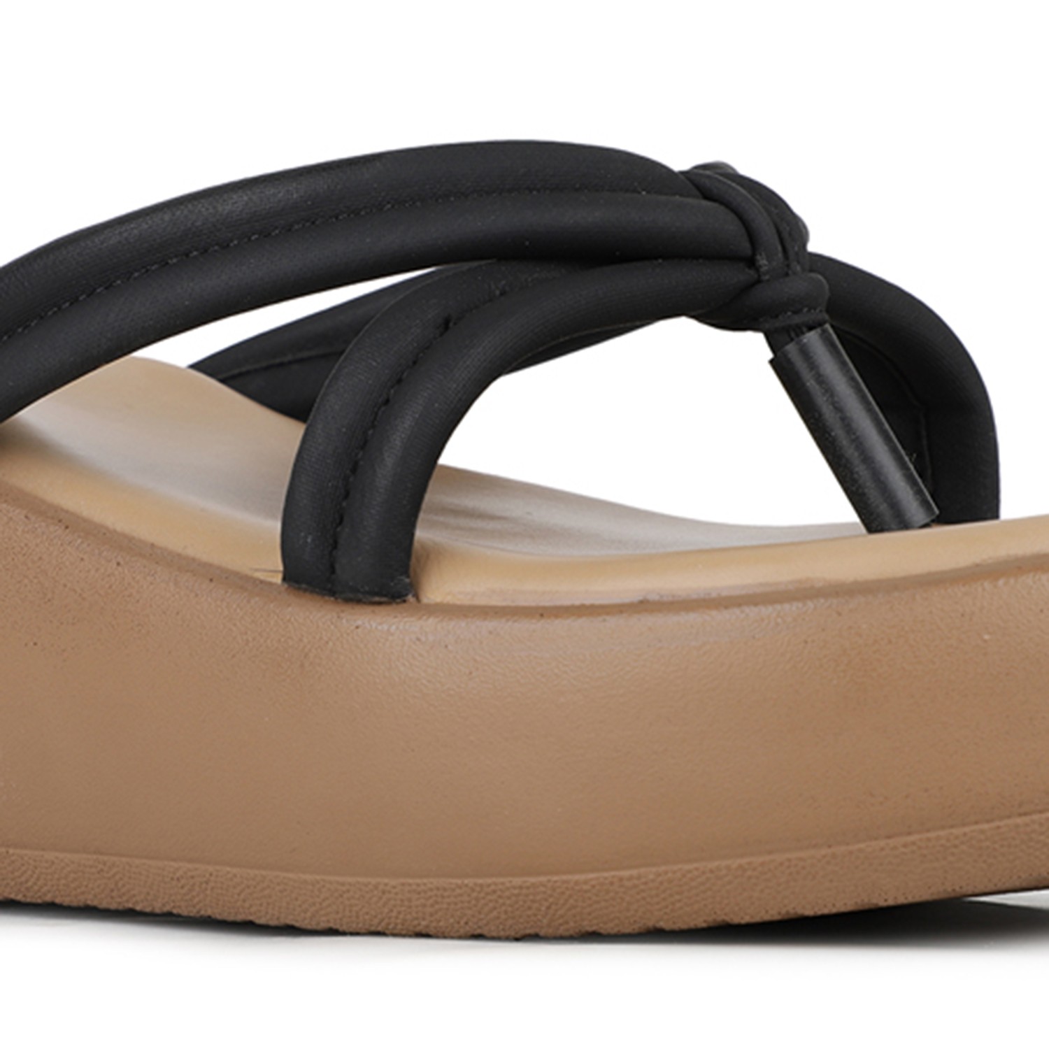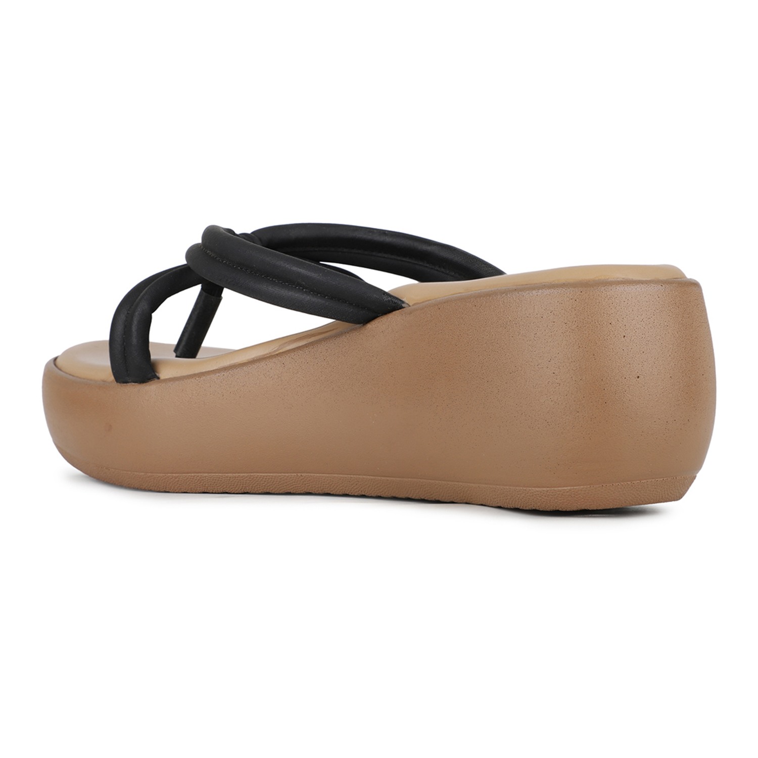Elegant black wedge sandals with a round toe. These stylish wedges are perfect for a night out or any formal occasion, combining comfort and sophisticated design.