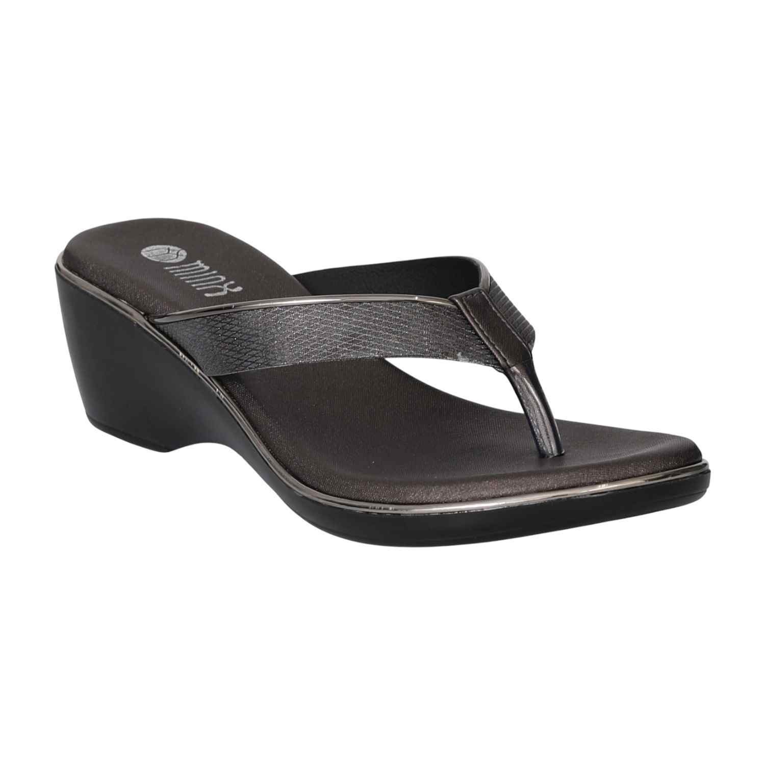 This sandal features a graphite-colored upper with a classic wedge design and a comfortable footbed, offering a chic look that pairs effortlessly with casual or dressy outfits. The elevated sole provides added height without sacrificing stability, making it ideal for all-day wear.