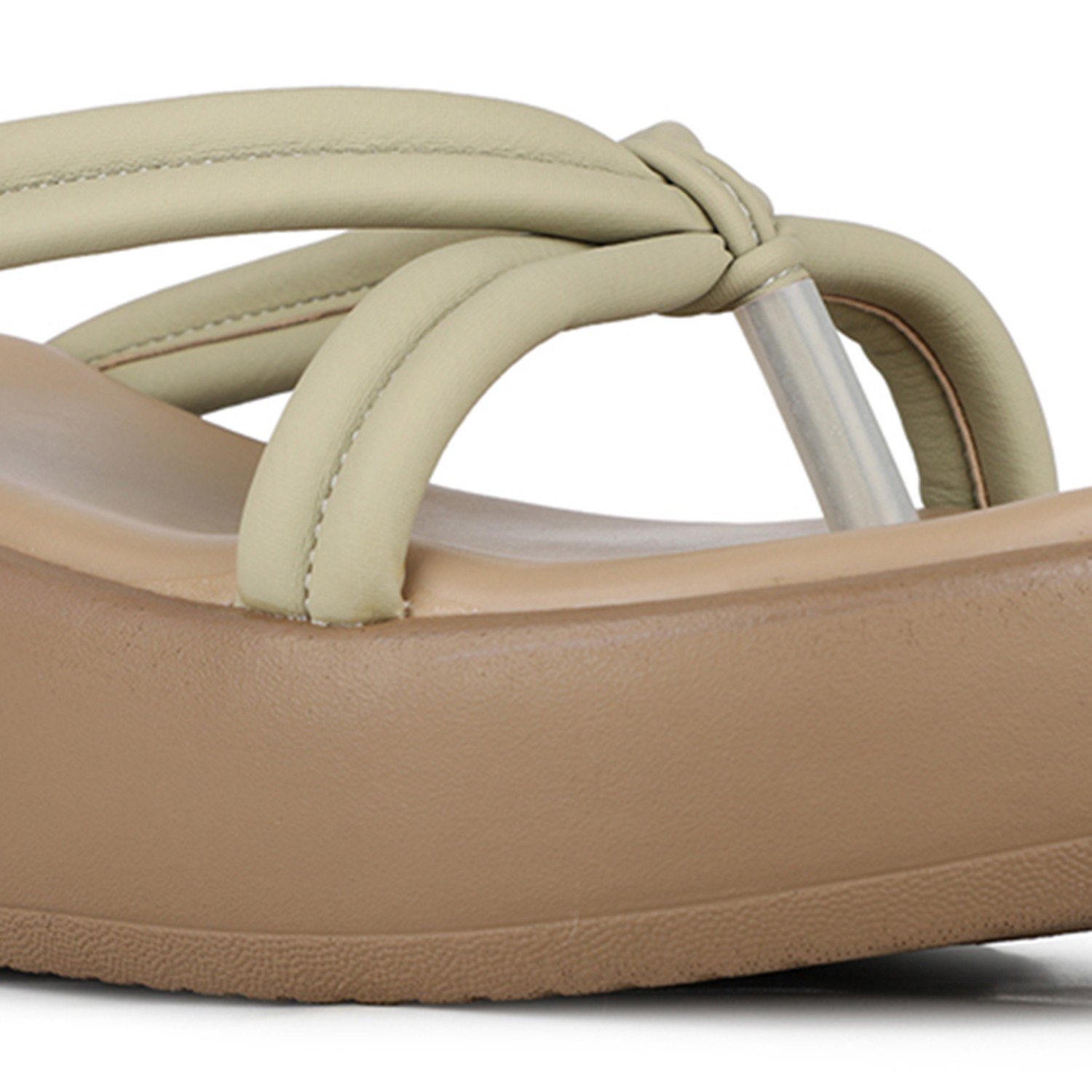 Vibrant green sandals with a solid pattern and wedge heel. These sandals add a pop of color and fun to your party look, offering both style and stability for your feet.