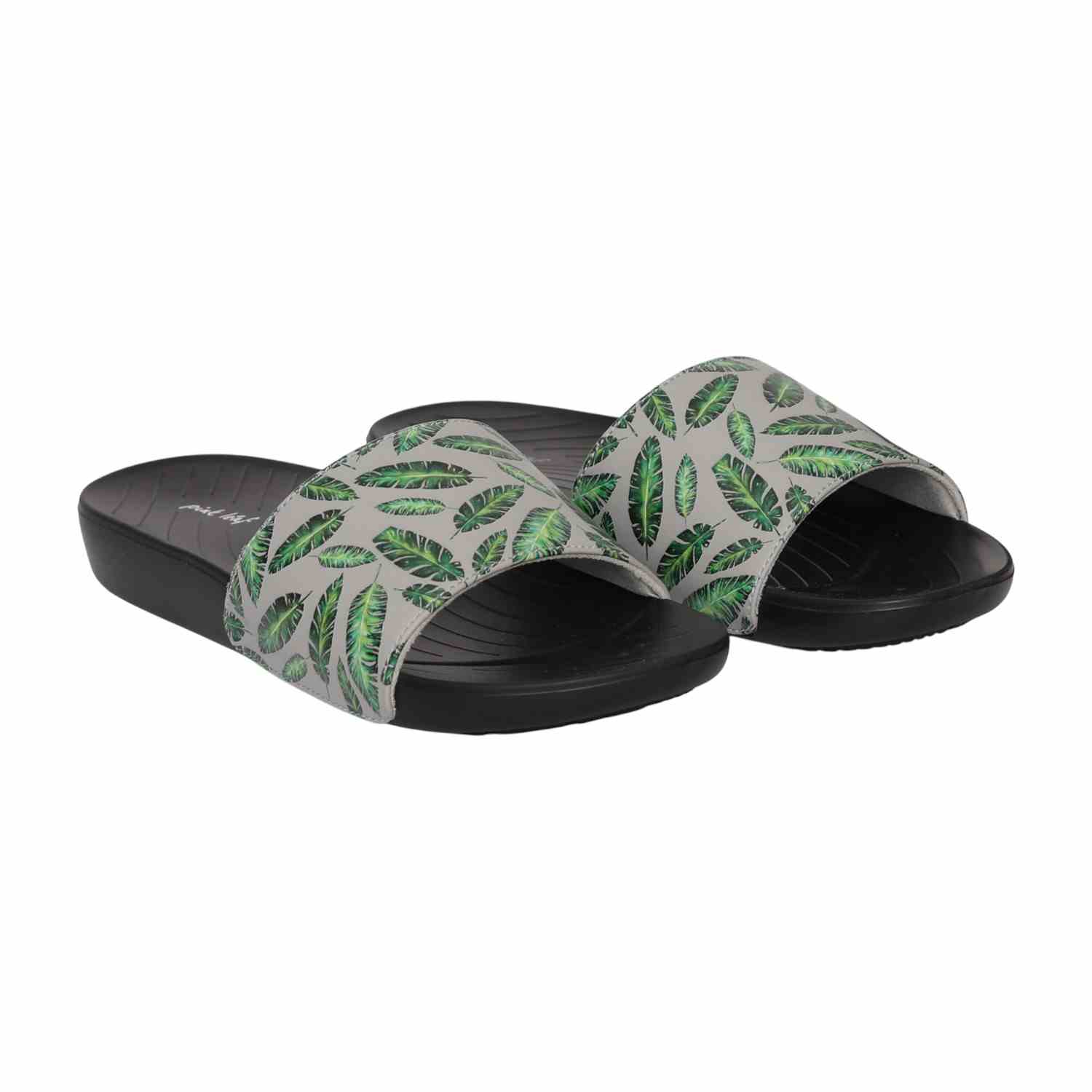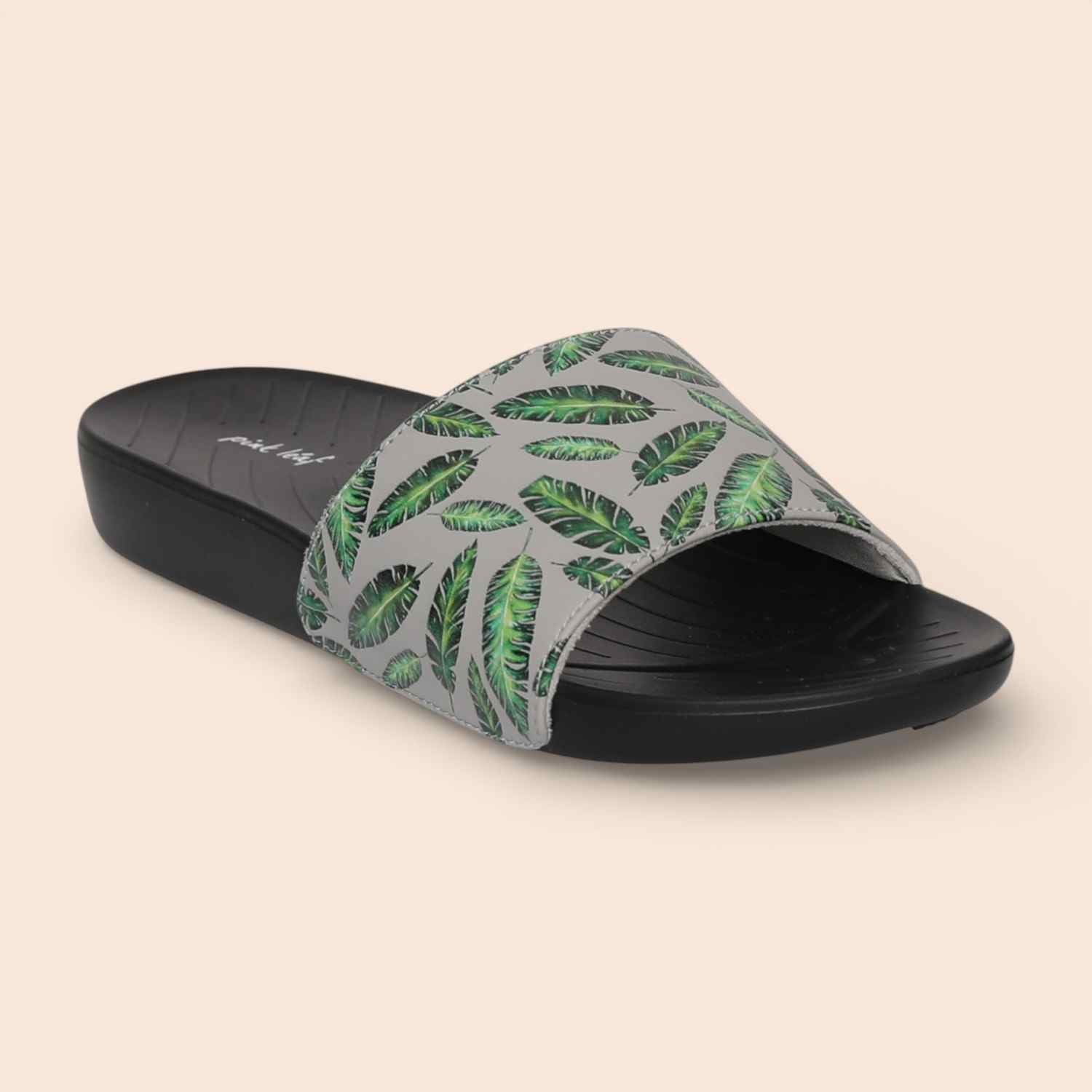 A blend of bold contrast and tropical charm, these slides bring together earthy leaf patterns with a dark, modern base. Designed for effortless comfort and everyday wear, they add a hint of personality to casual outfits while keeping things relaxed and breathable.