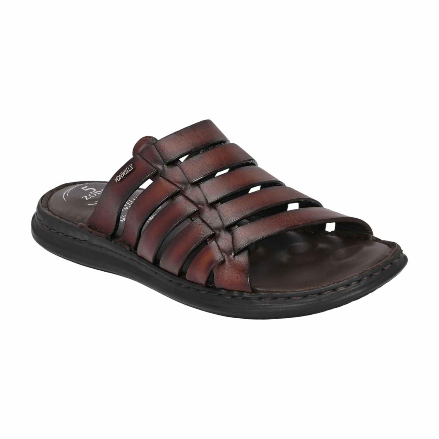 Men Burnished Brown Leather Caged Slip-On Sandal