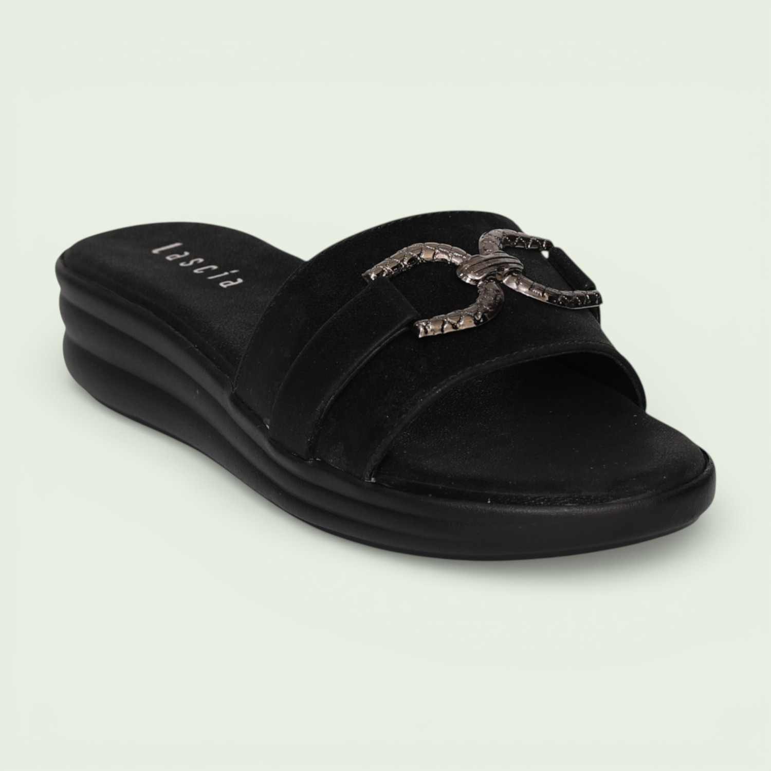 Women Black Stylish Cross Band Wedge