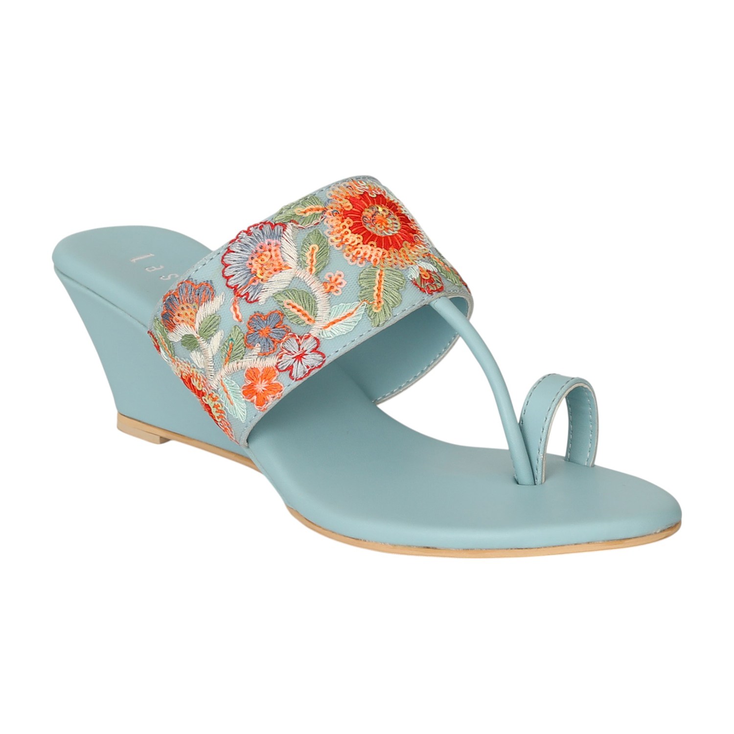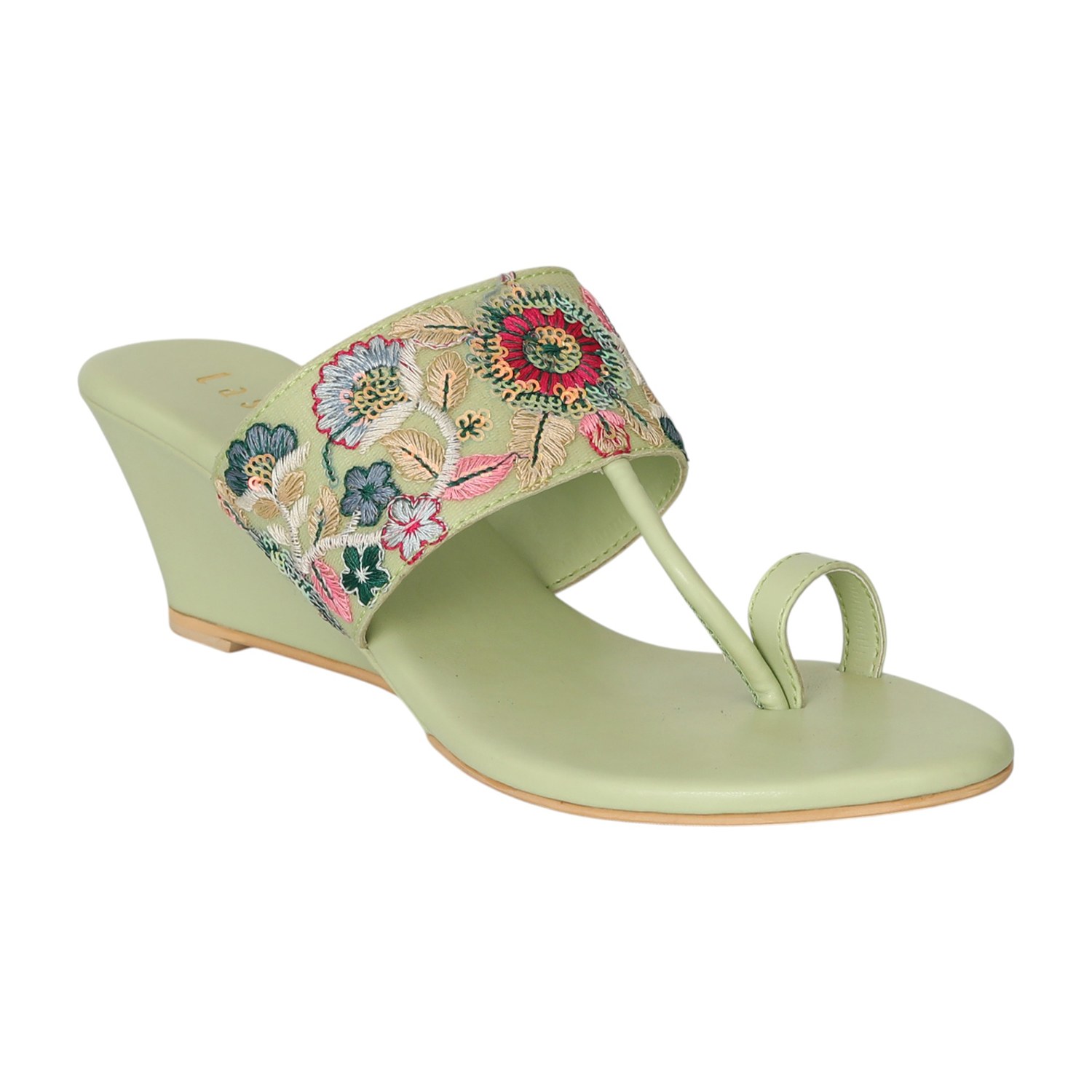 Women Mint Floral Grace Wedges