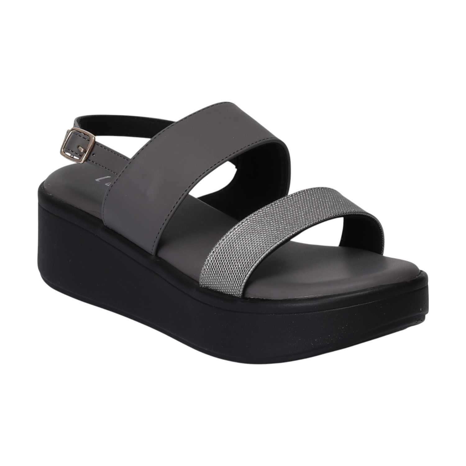 Women Grey Dual-Strap Comfort Wedges